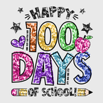 Celebrate with stars! The "Happy 100 Days of School" transfer features a starry design perfect for commemorating the special milestone. This fun, vibrant graphic is great for t-shirts, hoodies, or accessories, bringing some extra sparkle to any outfit.