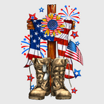 Celebrate faith and freedom with this striking American cross design. Featuring the stars and stripes alongside floral accents, this transfer is perfect for T-shirts or sweatshirts. Express your love for both country and faith with a design that stands out this 4th of July.