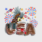 This powerful bald eagle transfer is a tribute to the spirit of America. With fireworks bursting in the background and USA lettering, it’s perfect for T-shirts or sweatshirts that need a patriotic touch. Wear this iconic design proudly at your next Independence Day gathering.