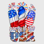 Get the party started with this fun "Party in the USA" design. Great for T-shirts or tank tops, this transfer is perfect for anyone looking to add a festive and lively touch to their 4th of July celebration while staying stylish.