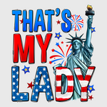 Celebrate the 4th of July with this bold and empowering "That's My Lady" design, featuring a proud Statue of Liberty. Ideal for T-shirts, hoodies, or tank tops, this transfer captures the essence of freedom and feminine strength. Whether you're watching fireworks or enjoying a backyard BBQ, this design adds a unique and patriotic flair to your outfit.