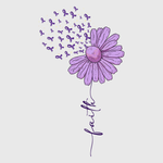 A striking purple butterfly balloon releasing smaller butterflies, this Alzheimer’s awareness design symbolizes hope and freedom. The soft, gentle graphics are perfect for t-shirts, hoodies, or canvas bags. Ideal for those who want to support the cause with a meaningful and serene design.