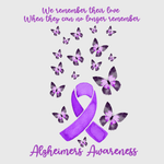 This heartwarming design reminds us of the love we cherish even when memories fade. The purple ribbon and butterfly elements add an elegant touch. This transfer works beautifully on t-shirts, hoodies, and other apparel, perfect for honoring loved ones affected by Alzheimer’s.