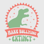 Featuring a cute dinosaur and vibrant text, this playful design is ideal for kids' clothing. The fun, eye-catching graphic helps spread the important message of making bullying a thing of the past, all while looking cool and stylish.