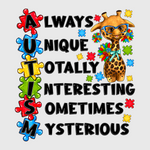 Always Unique Autism Awareness Girraffe Transfer