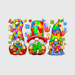 This playful gnome design is a fun way to show your support for autism awareness. Perfect for t-shirts or sweaters, this colorful transfer helps spread the message of love and acceptance for the autism community. Add some whimsy to your wardrobe with this design.