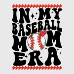 Declare your love for baseball and show your support for your child with our In My Baseball Mom Era Heart Transfer design! Wear it proudly on a t-shirt and let everyone know that you are a proud baseball mom! Cheer on your child with this transfer that will make you feel the passion of the game!