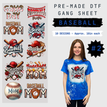 Elevate your game with our Baseball Pre-Made Gang Sheet! Each sheet features 10 ready-to-press designs, each measuring 10-11 inches. Perfect for pressing onto your favorite jerseys or gear, our DTF gang sheet will take your baseball spirit to the next level. Get yours now and show off your team pride!