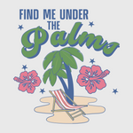 Escape to paradise with this tropical "Find Me Under the Palm" transfer. Ideal for light fabrics like sundresses or flowy tops, this design brings beach relaxation wherever you go. Perfect for vacations or just dreaming of one.