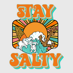 Embrace your salty side with this beach-inspired "Stay Salty" transfer. It's a perfect fit for beachwear, swimsuits, or casual tank tops, keeping the seaside vibes strong. Ideal for those who can't get enough of the ocean breeze.