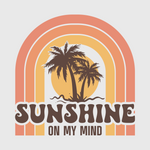 Brighten your wardrobe with this vintage "Sunshine on My Mind" transfer. This design is ideal for casual t-shirts and will keep your style sunny even on the cloudiest days. Wear it to express your endless summer vibes.