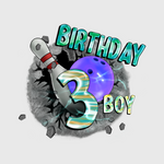Celebrate a birthday in style with the "Birthday Boy Bowling 3" transfer. Perfect for young bowlers turning 3, this colorful design is great for birthday shirts that make any day at the lanes extra special.