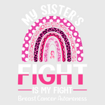 “My Sister’s Fight Is My Fight” is the heartfelt message displayed on this pink ribbon transfer. Perfect for t-shirts or sweatshirts, this design honors family support and solidarity. Wear it to proudly stand beside a loved one during breast cancer awareness walks or events.