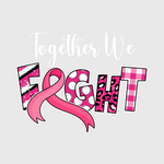 “Together We Fight” in bold pink letters emphasizes unity in the battle against breast cancer. This transfer looks perfect on matching shirts for group events, walks, or fundraisers, symbolizing the strength that comes from standing together. Ideal for casual or event wear.