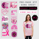 Discover the powerful statement of support and awareness with our Breast Cancer Pre-Made DTF Gang Sheet. With 10 unique designs measuring 10-11 inches each, this sheet is ready to press onto any apparel and make a powerful impact. Show your passion and inspire others in the fight against breast cancer.