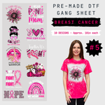 Discover the powerful statement of support and awareness with our Breast Cancer Pre-Made DTF Gang Sheet. With 10 unique designs measuring 10-11 inches each, this sheet is ready to press onto any apparel and make a powerful impact. Show your passion and inspire others in the fight against breast cancer.