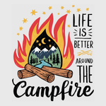 Gather around the campfire with this cozy and vibrant design. Perfect for casual tops or outdoor gear, this graphic celebrates the warmth and comfort of time spent with friends and family under the stars. Make every night a memorable one with this campfire-inspired design.