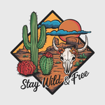 Embrace the spirit of the wilderness with this bold and colorful desert design. Perfect for t-shirts or jackets, this graphic is ideal for those who love exploring the outdoors and living life on their own terms. Stay wild and free wherever your adventures take you.