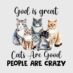 Celebrate your faith and feline love with this "God is Great, Cats are Good" transfer. This gentle and heartwarming design is perfect for creating t-shirts that remind you of the joy cats bring into your life.