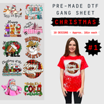 Get into the holiday spirit with our Christmas Pre-Made Gang Sheet! This DTF sheet features 10 festive designs, each measuring 10-11 inches. With our ready-to-press sheet, you can easily create high-quality and unique Christmas decorations. Spread joy and cheer with this must-have product for the holiday season!