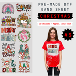 Get into the holiday spirit with our Christmas Pre-Made Gang Sheet! This DTF sheet features 10 festive designs, each measuring 10-11 inches. With our ready-to-press sheet, you can easily create high-quality and unique Christmas decorations. Spread joy and cheer with this must-have product for the holiday season!