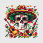 This striking skull design, complete with a serape and traditional Mexican elements, is perfect for celebrating Cinco de Mayo. Printed on casual tops or t-shirts, it adds a bold and festive flair to your holiday wardrobe.
