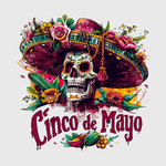 Celebrate the lively spirit of Cinco de Mayo with this detailed skull wearing a traditional sombrero. Perfect for t-shirts or sweatshirts, this vibrant design adds a unique cultural twist to your festive wardrobe.