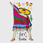 Get the party started with this poncho and sombrero design! This festive transfer is perfect for t-shirts or aprons, adding a vibrant touch to your Cinco de Mayo celebrations. The colorful poncho makes this design an eye-catching addition to any outfit.