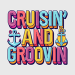 Feel the rhythm of the waves with this vibrant Cruisin’ and Groovin’ design. Perfect for casual tops or tank tops, this colorful graphic captures the fun and carefree vibes of a cruise. Ideal for anyone who loves to groove to the sounds of the sea.