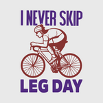 This fun and quirky "I Never Skip Leg Day" transfer is perfect for cyclists who take pride in their strong legs. A great fit for casual and athletic wear, this design is all about cycling strength.