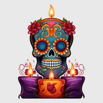 Honor the ancestors in style with this altar design featuring a candlelit skull surrounded by marigolds. Ideal for a casual t-shirt or even an apron, this design brings warmth and remembrance to your attire. Its vibrant colors and rich details make it a standout piece for Day of the Dead events.