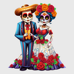 Get ready to dance the night away with this lively dancing skeleton couple design. Perfect for a light t-shirt or a fun hoodie, this design brings energy and joy to any outfit. The vibrant colors and playful imagery make it ideal for celebrating the Day of the Dead with flair.