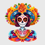 This stunning floral calavera crown design is perfect for showcasing your love of Dia de los Muertos. Ideal for t-shirts or flowy tops, the vibrant colors and delicate flowers make this piece a beautiful representation of the holiday. Let this design add elegance and tradition to your look.