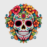 This elegant sugar skull design is perfect for those who want to celebrate Dia de los Muertos in style. Ideal for flowy dresses or light t-shirts, the delicate flowers and intricate details make this piece a sophisticated nod to the holiday. Let your wardrobe bloom with tradition.
