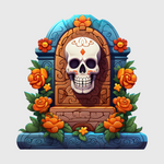 Bring the spirit of Dia de los Muertos into your wardrobe with this traditional sugar skull altar design. Perfect for casual tops or even table linens, this vibrant artwork captures the essence of the holiday with its colorful skulls, candles, and marigold accents.