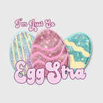 Flaunt your extra flair this Easter with the "I'm Just So Egg-stra" design. Ideal for vibrant seasonal decor or a standout party outfit, it's fun and fabulously festive.