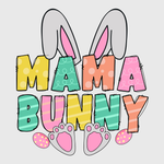 Show off your mama pride this Easter with the "Mama Bunny" transfer. Featuring bunny ears and a soft color palette, this design is perfect for moms who want to celebrate in style. Apply it to t-shirts, tanks, or sweatshirts for a cute and cozy Easter look.