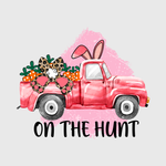 Hop into Easter with the "Pink Easter Hunt Truck" transfer. This playful design features a pink truck loaded with Easter goodies, ideal for creating a fun and festive look. Perfect for t-shirts and sweatshirts, this transfer will get you in the Easter spirit in style.