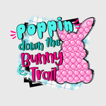 Get ready to hop along the bunny trail in style with this "Poppin' Down the Bunny Trail" transfer. Ideal for adding a fun and festive touch to t-shirts or sweatshirts, this colorful design brings out the Easter excitement in any outfit. Perfect for kids and adults alike!