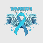 Show your warrior spirit with this empowering "Warrior" design featuring a ribbon with wings. It's perfect for casual t-shirts or fitness wear, serving as a bold statement in the fight against diabetes.