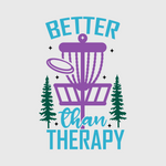 For players who find peace on the course, this “Disc Golf: Better Than Therapy” transfer will hit the mark. Add it to your casual wear and show how the game brings you calm.