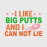 Show your sense of humor with this playful “I Like Big Putts” transfer design. A fun addition to casual tees, perfect for anyone who enjoys the game and a good pun.
