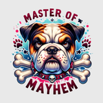 Bring out the tough but lovable side of Bulldogs with this "Master of Mayhem" design. Perfect for casual t-shirts or hoodies, this transfer adds a playful yet fierce touch to any outfit, making it a must-have for Bulldog lovers.