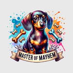 Celebrate the mischievous side of Dachshunds with this bold and colorful design. Perfect for casual t-shirts, sweatshirts, or hoodies, the "Master of Mayhem" Dachshund will bring fun and energy to your wardrobe. Show off your love for this spunky breed!