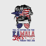 With a trendy top knot design, this transfer adds some flair to your election wardrobe. Perfect for t-shirts or caps, it combines a playful aesthetic with a bold political message. Show off your stance with style and let the world know your vote is locked in for the 2024 election.