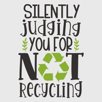 This humorous "Silently Judging You for Not Recycling" transfer is perfect for eco-warriors with a sense of humor. Ideal for casual t-shirts or sweatshirts, this playful design raises awareness about recycling and encourages others to be more environmentally responsible.