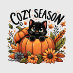 Snuggle up this fall with the "Cozy Season Cat" transfer. This cute design, featuring a cozy cat nestled among pumpkins, is perfect for casual hoodies or sweatshirts. It brings warmth and a playful touch to your wardrobe, celebrating the best of autumn coziness.