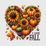 Show your affection for autumn with the "I Love Fall Heart" transfer. This heart-shaped design, filled with fall flowers and pumpkins, is perfect for sweaters or casual fall attire. It’s a lovely way to embrace the warm colors and beauty of the season in your wardrobe.