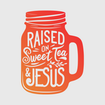 Show off your Southern roots with this "Raised on Sweet Tea and Jesus" transfer design. It looks great on t-shirts, sweatshirts, or even tote bags, bringing a touch of Southern charm and faith to any outfit. Perfect for proud Southerners everywhere.