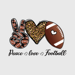 Spread good vibes with this fun "Peace, Love, Football" design. Perfect for casual tops or hoodies, this graphic is great for fans who live for the love of the game. Show off your peaceful, football-loving nature with this stylish and playful design.